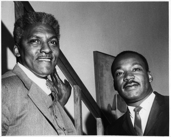 In 1948, Rustin travelled to India to meet with leaders of Ghandi’s civil rights movement and learn techniques of non-violent civil resistance. Rustin met and worked with Dr King on the Montgomery Bus Boycott in 1958-9, and became his head strategist. Rustin was credited with persuading King to adopt a fully pacifist strategy in public life and dispense with bodyguards and personal weapons, despite the increased risk to his life in doing so. He organised the 1963 March on Washington for Jobs and Freedom, then the largest demonstration in American history, at which King gave his famous “I Have A Dream” speech.